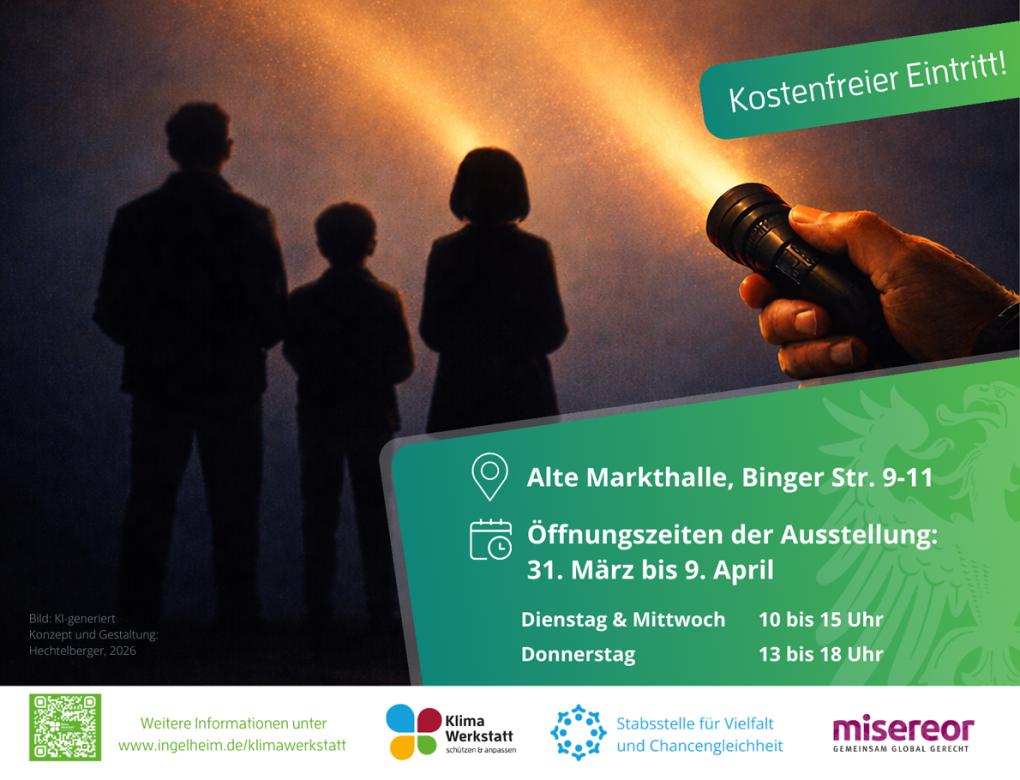 Die letzte Ausstellungswoche ist für Schulklassen reserviert, die sich vorab anmelden können. Während dieser Zeit werden die Gruppen pädagogisch begleitet. Organisiert wird die Ausstellung von der städtischen KlimaWerkstatt in Zusammenarbeit mit der Stabsstelle für Vielfalt und Chancengleichheit der Stadt Ingelheim.