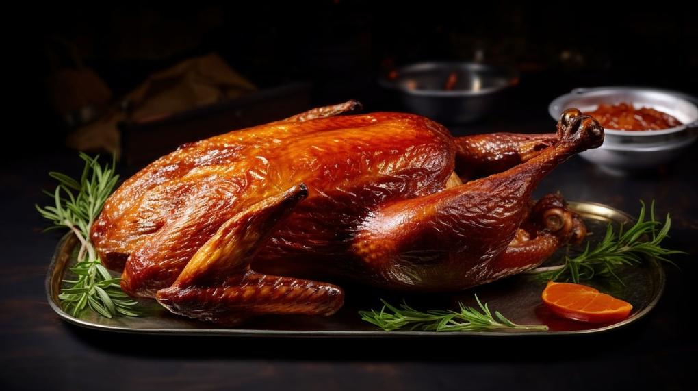 Frisch und knusprig aus dem Rohr mit zweierlei Saucen, Kartoffelklößen und Rotkraut tranchiert in unserem Restaurant € 169,00