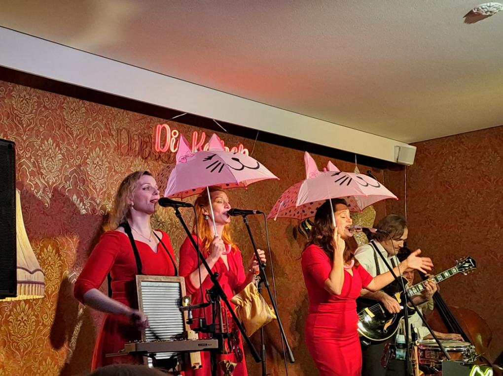 Andreas und Jürgen Thelen haben mit dem „Zeitensprung“ ein echtes Schmuckkästchen für Liebhaber der Kleinkunst in Ingelheim etabliert. Am letzten Sonntag statteten die „Katzen“ (Anja Kintscher, Claudia Seng und Sarah Schurig) unterstützt von ihren beiden „Katern“ an Gitarre und Kontrabass einen musikalischen Besuch ab. Das Publikum erlebte in der Tat einen Zeitensprung - hinein in die Musikwelt der Andrews Sisters, deren unverwechselbarer Gesangsstil eine ganze Epoche prägte. Und die drei, die an diesem Abend auf der Bühne agierten, standen ihren berühmten Vorbildern in nichts nach. Ihre stimmliche Harmonie war ebenso beeindruckend wie ihre gesamte Bühnenpräsenz.