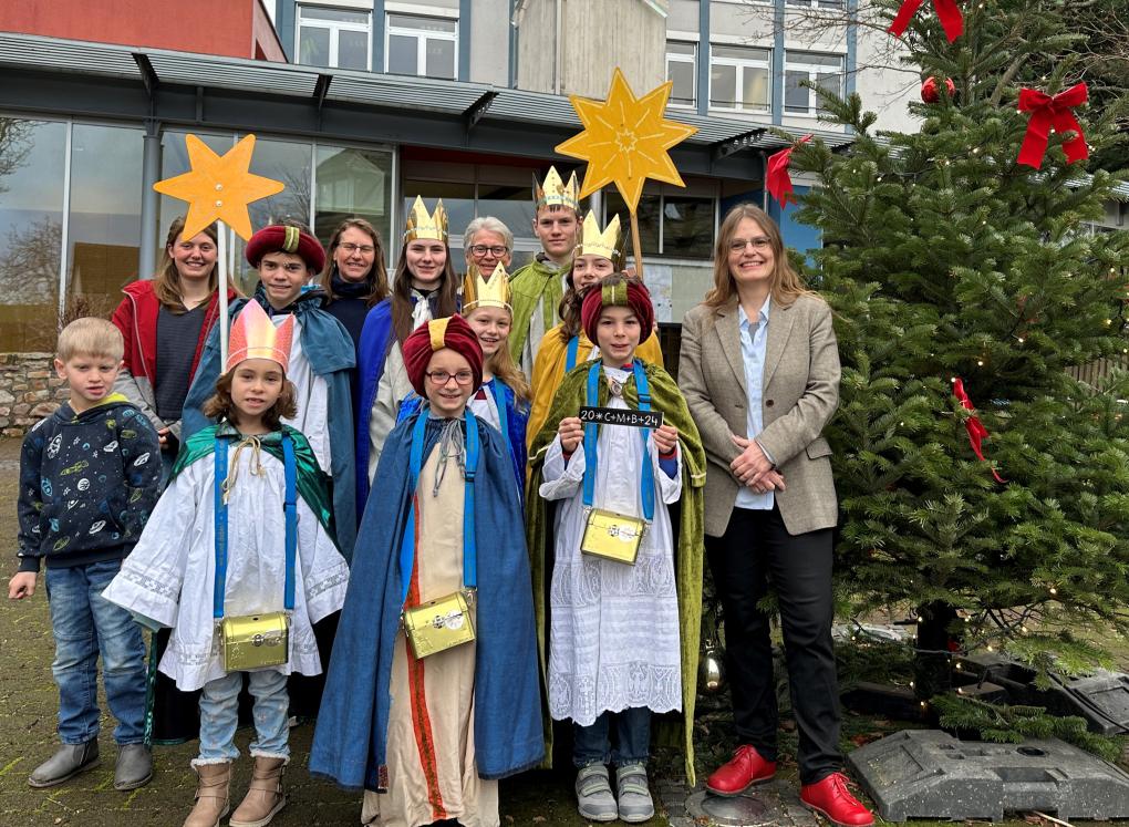 Traditionell ziehen Anfang des neuen Jahres die Sternsinger aus, um anlässlich der Geburt von Jesus Christus den Segen Gottes in die Welt zu tragen. In diesem Jahr kam die Gruppe aus Frei-Weinheim in das Interimsrathaus in der Wilhelm-Leuschner-Straße und trug Lieder und den Segensspruch vor.