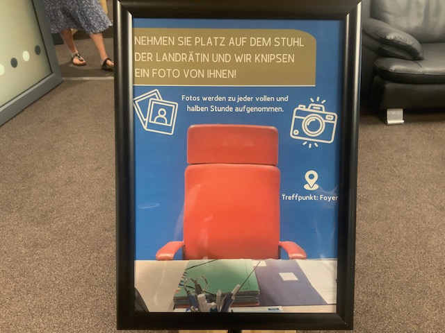 Neben vielen Präsentationsständen der unterschiedlichen Abteilungen der Kreisverwaltung konnten die Gäste auch die Räumlichkeiten des neuen Hauses im Rahmen von Rundgängen erforschen. Höhepunkt war dabei sicherlich, Fotos auf dem Stuhl der Landrätin zu machen.