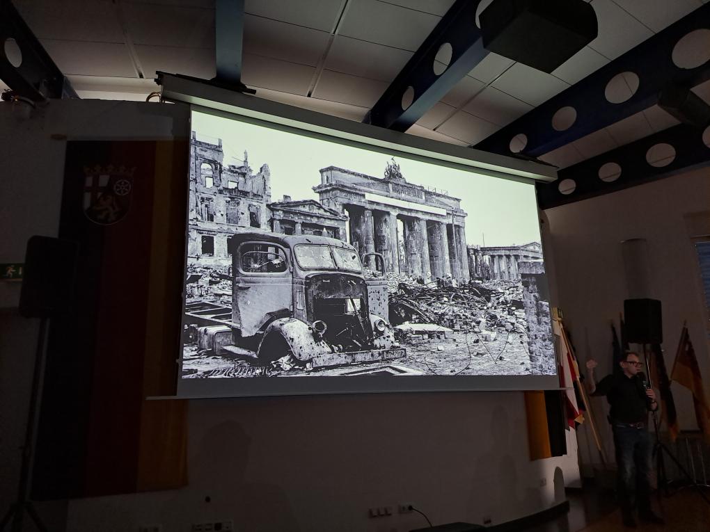 „Wenn wir keine Geschichte kennen, kennen wir keine Kontexte – wenn wir keine Zusammenhänge verstehen, können wir nicht urteilen – und wenn wir nicht urteilen können, können wir nicht demokratisch handeln“. Mit diesen Worten eröffnete Ingo Espenschied seinen etwa einstündigen Vortrag, der audio-visuell mit historischen und aktuellen Aufnahmen untermauert wurde.
