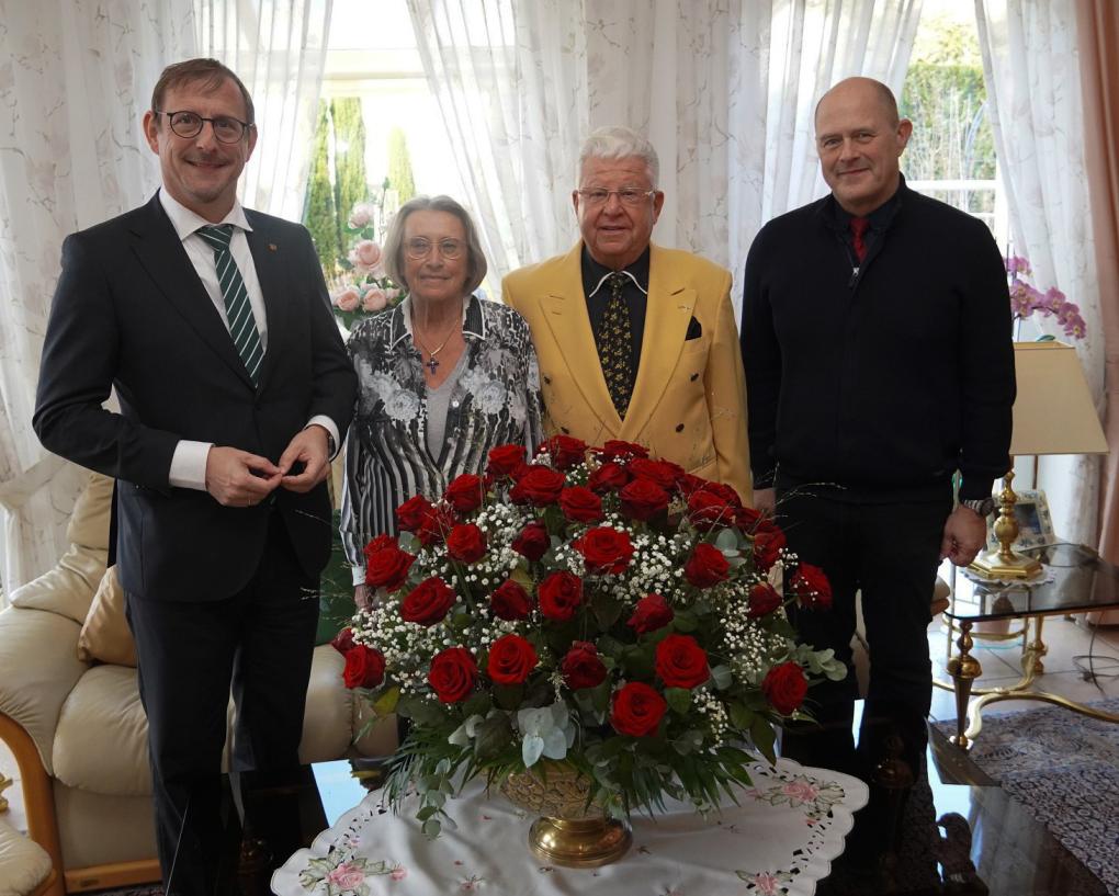 Sechs Jahrzehnte nach ihrer Hochzeit in Münster feiern Gudrun und Helmut Engel nun ihr besonderes Jubiläum. Zu diesem Feiertag gratulierte Landrat Thomas Barth persönlich und überbrachte gemeinsam mit dem Bürgermeister der Verbandsgemeinde Gau-Algesheim, Benno Neuhaus, die herzlichsten Glückwünsche.
