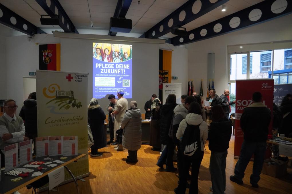 Eine Karriere im Gesundheitswesen? Das ist für viele Menschen eine passende und sinnvolle Option, wie sich bei der diesjährigen Pflege- und Gesundheitsmesse „Pflege Deine Zukunft“ des Landkreises Mainz-Bingen zeigte. 13 Unternehmen und rund 200 Arbeitssuchende kamen im Ingelheimer Kreistagssaal zusammen mit dem Ziel, verschiedene Berufsfelder rund um Pflege und Gesundheit in der Region kennenzulernen und sich über offene Ausbildungs- sowie Arbeitsstellen auszutauschen.
