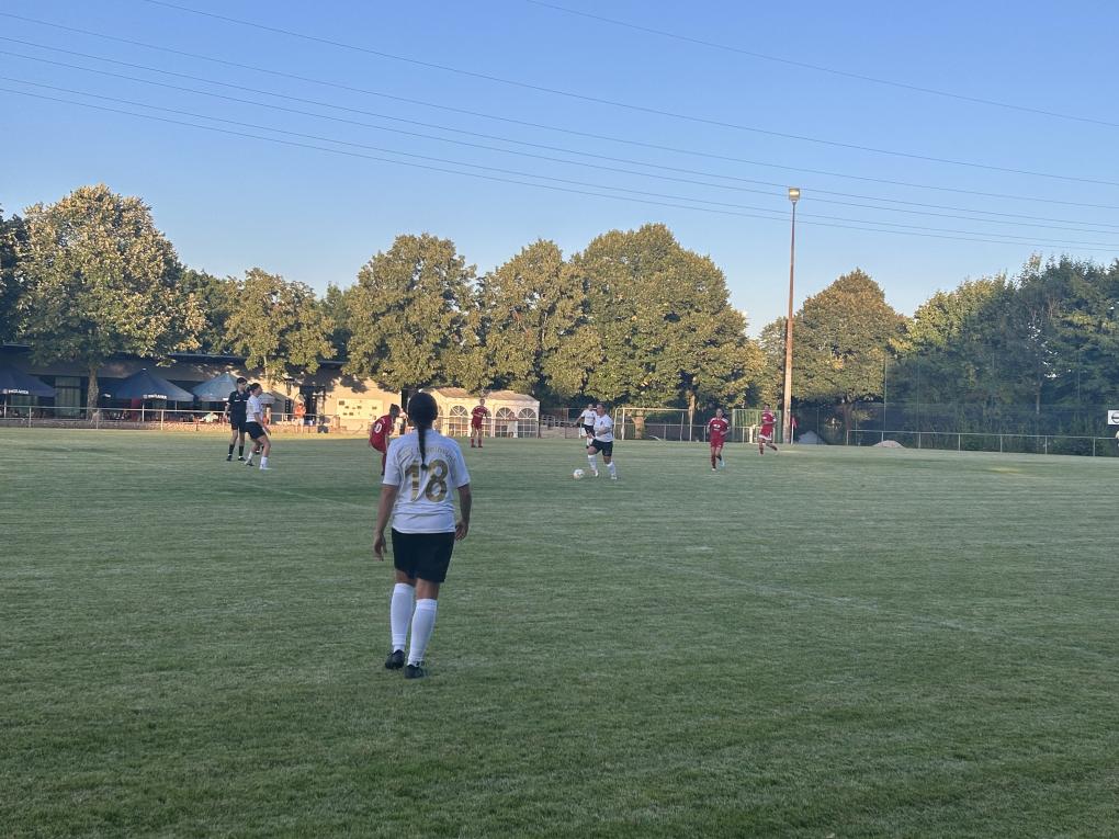 Von Beginn an wurde St. Ingbert früh attackiert und direkt unter Druck gesetzt. Die Folge dieses hohen Pressings waren frühe Ballgewinnen und zwei daraus resultierende frühe Treffer durch Annabel Rink (4.) und Angelia Drewicke (6.). Vor allem beim Drewicke-Treffer, dem ein Ballgewinn auf der rechten Seite von Mika Müller-Haeseler, die auf Rink weiterleitete vorausging, wurde sehenswert kombiniert. Rink verlagert das Spielgerät nämlich blitzschnell nach links in den Lauf der späteren Torschützin, die eiskalt einschob. In der Folge bot sich den 75 Zuschauern eine abwechslungsreiche Partie zweier ebenbürtiger Teams, die im FFV die etwas spielstärkere und konsequentere Mannschaft hatten. Auch stand die klar stärkere Torhüterin auf Ingelheimer Seite. Katharina König hielt nämlich stark und extrem sicher. Sie selbst war auch sehr zufrieden mit ihrer Leistung. Sie sagte: „Ich war gut im Spiel drin, habe die Übersicht behalten und so viele Bälle sicher abfangen können. Auch mit meinem Passspiel war ich sehr zufrieden, weil ich mich dadurch gut ins Aufbauspiel einbringen konnte.“ Selbst einen von Emilia Weber unglücklich verursachten und auch sehr fragwürdigen Foulelfmeter, der von der starken DJK-Kapitänin Kira Roob links vorbeigeschossen wurde, hätte König, die im bedrohten Eck war, wohl auch pariert (22.).