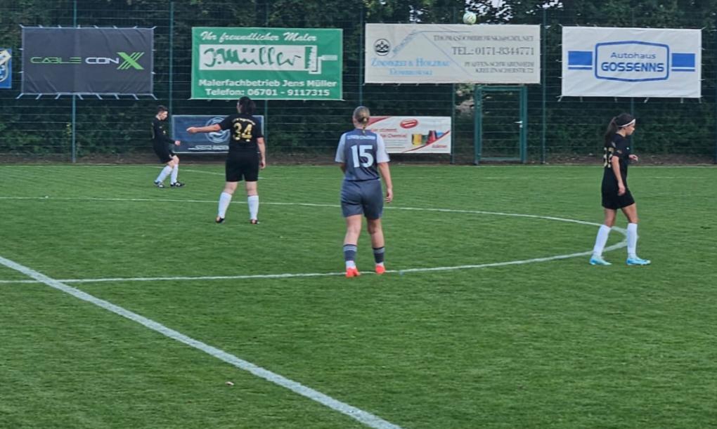 Die Rahmenbedingungen waren allerdings nicht die Besten, da der FFV mit einer Krankheitswelle und dem durch Dauerregen aufgeweichten und deshalb extrem schwer bespielbaren Rasenplatz in Pfaffen-Schwabenheim klarkommen musste. Gerade in der Anfangsphase hatten beide Teams große Probleme beim Passspiel und so war es Folgerichtig, das ein tolles Solo von FFV-Innenverteidigerin Larissa Sehl, die gleich mehrere Gegnerinnen ausdribbelte und den Ball gezielt im Tor versenkte, für die frühe 1:0-Führung sorgte (6.).