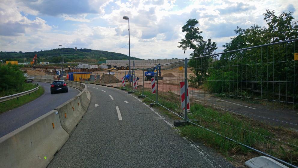 Im Laufe der Woche wird außerhalb des Verkehrsraumes das Baufeld für die Errichtung des westlichen Widerlagers vorbereitet. Für die zukünftige Beschickung der Baustelle ist ein geringer Eingriff in die jetzige Radwegführung notwendig. Die Umlegung der Streckenführung ist für Ende der Woche oder zu Beginn der nächsten Woche (5. bis 9. August) vorgesehen. Der LBM Worms bittet alle Radfahrer, mit angemessener Geschwindigkeit die neue Streckenführung zu befahren.
