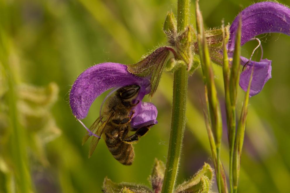 Foto: NABU/Hugo Gabriel - Biene besucht Wiesen-Salbei