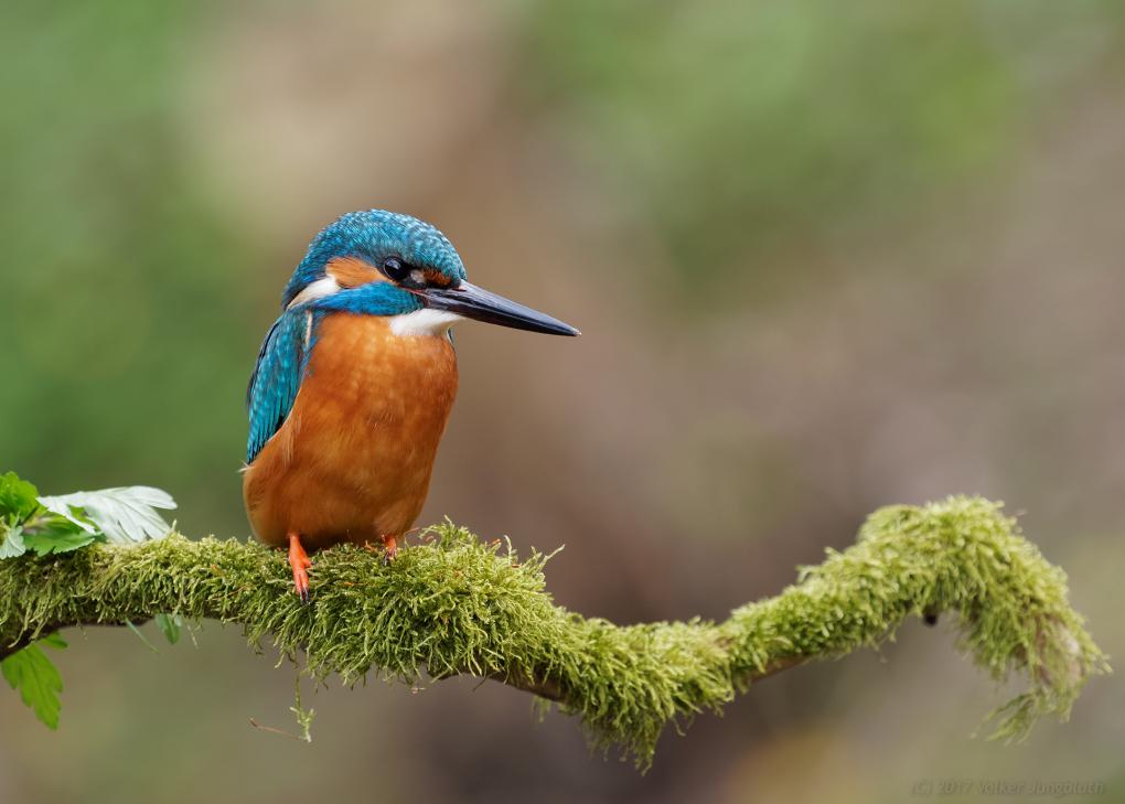 BU: Eisvogel auf einem bemoosten Ast. Foto: Volker Jungbluth.