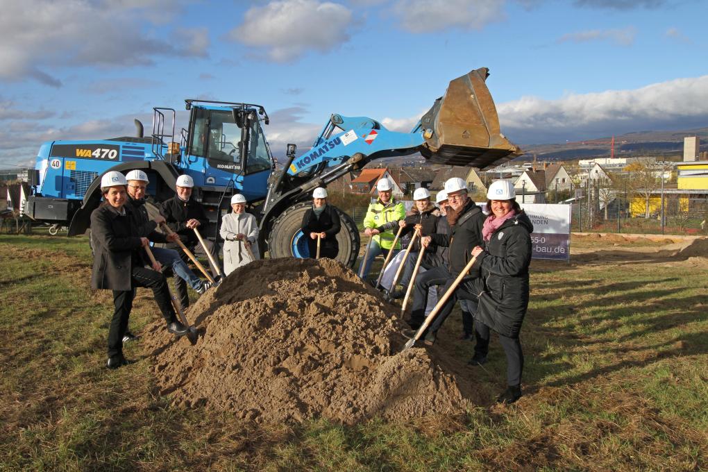 „Eigentlich haben wir gedacht, wir haben genügend Kitaplätze“, schmunzelte Oberbürgermeister Ralf Claus beim Spatenstich für die neue Kita Gänsberg. Und Bürgermeisterin Eveline Breyer ergänzte „durch die neuen Kitagesetze, Zuzüge und einen leichten Anstieg an Geburten brauchen wir mehr Plätze.“ Eine sechsgruppige Kindertagesstätte für Kinder von Null bis sechs Jahren soll auf dem freien Gelände hinter dem Jugend- und Kulturzentrum Yellow entstehen. Das Hanggrundstück mit sensationellem Ausblick auf den Rheingau wird terrassiert bebaut, teilweise einstöckig, teilweise mit zwei Stockwerken. Die Dachflächen werden als extensives Gründach ausgebildet. Mit einer Photovoltaikanlage zur Einstromversorgung und der Beheizung mit Nahwärme (Anschluss an die Realschule plus) ist das Gebäude energetisch optimiert. Der Energiestandard entspricht KFW 55. „Je nach Altersgruppe werden „kleinen“ und „großen“ in einem Bereich betreut, sollen sich aber auch über das Gebäude mischen und gemeinsam aufwachsen“, beschreibt Breyer. Sowohl das Außengelände als auch das Gebäude werden viele Möglichkeiten zum Bewegen und Begegnen bieten. An einen mittig gelegenen Eingangsbereich werden sich ein Bistro mit Kinderküche anschließen. Im Obergeschoss finden sich dann ein Bewegungsraum mit Zugang zu der Dachterrasse, ein Elternkaffee sowie die Personalräume.
