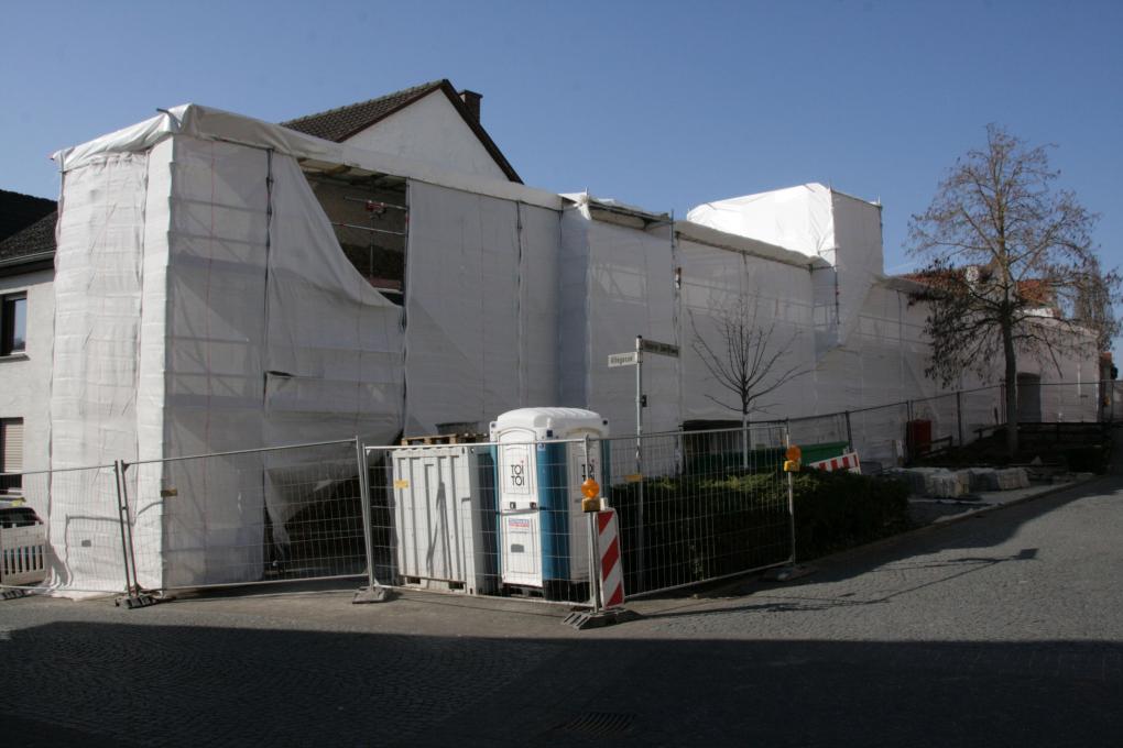 Nachdem vor zwei Jahren der Bewuchs an der Bruchsteinmauer aus wildem Wein entfernt wurde, sind Beulen der Oberfläche der Wand und eine defekte Mauerabdeckung mit Hohlziegel festgestellt worden. Die historische Mauer grenzt teilweise an Privatgrundstücke mit Wohn- und Nebengebäuden, so dass die Gefahrenstellen sogleich gesichert wurden. Eine Sanierung dieses Teilstücks der alten Ober-Ingelheimer Befestigung wurde umgehend eingeleitet. Ebenso wie andere ältere Mauerabschnitte und Türme wurde das Mauerstück in den 1980er Jahren mit Zementfugen nachgefugt – was allerdings Bruchsteinmauern schadet, da die Steine durch den sehr harten Zementmörtel absanden und sich auflösen, während die Fugen standfest bleiben. Nach Untersuchung der Standsicherheit und Sondierungsarbeiten, der Abstimmung mit der Denkmalpflege und dem Institut für Steinkunde wurde ein Sanierungskonzept erarbeitet und eine Kostenschätzung erstellt. Ein Förderantrag bei der GDKE (Generaldirektion Kulturelles Erbe Rheinland-Pfalz) wurde abgelehnt. Im Januar wurde mit dem Herausstemmen der Zementfugen begonnen und ist nun abgeschlossen. Die statische Ertüchtigung ist in Vorbereitung. Mit steigenden Außentemperaturen über fünf Grad kann anschließend mit der Verfestigung des Mauerinneren und der Neuverfugung des Bruchsteinmauerwerks begonnen werden. Die Arbeiten sollen zum Sommer 2022 abgeschlossen sein.