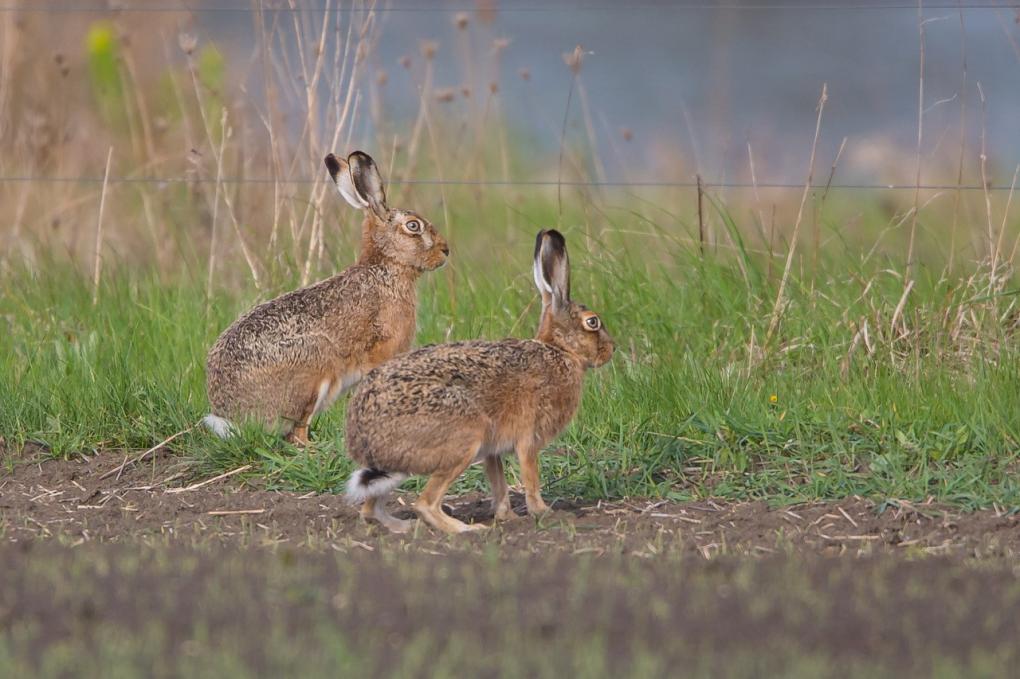 Eigentlich lebt der Feldhase das ganze Jahr über allein – außer von Januar bis März, denn da findet die Fortpflanzungszeit statt. Dann besteht oft die Möglichkeit, auch tagsüber mehrere Tiere an einem Ort anzutreffen. Nach einer sechswöchigen Tragzeit gebärt die Häsin bis zu vier Junge.