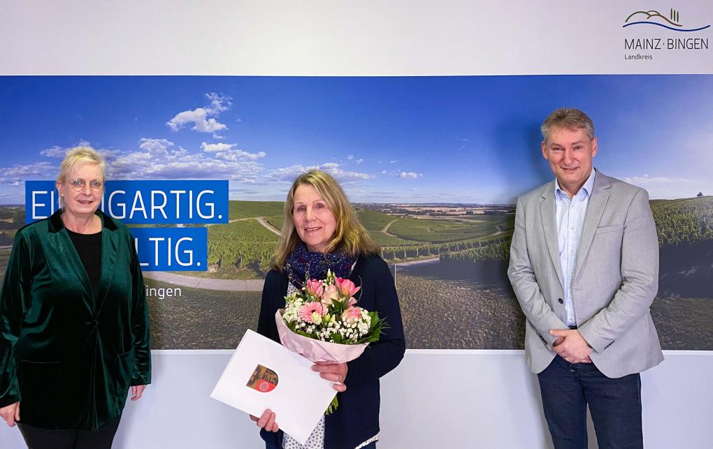 Dabei würdigte sie den langjährigen Einsatz in der Kreisverwaltung Mainz-Bingen: Bereits ihr Anerkennungsjahr verbrachte Regine Michel ab 1984 im Jugendamt des Landkreises Mainz-Bingen. Im Jahr darauf erhielt sie die staatliche Anerkennung als Sozialpädagogin und wurde in den Allgemeinen Sozialen Dienst übernommen. Nach einer Familienphase und Zuweisung zur Landskronschule Oppenheim wechselte die Mitarbeiterin 2006 erneut zum Allgemeinen Sozialen Dienst, bevor sie 2008 im Aufgabengebiet Jugendgerichtshilfe innerhalb des Fachbereichs Soziale Dienste im Jugendamt arbeitete. Ab 2015 war Regine Michel für die Betreuung unbegleiteter minderjähriger Flüchtlinge im Bereich des Allgemeinen Sozialen Dienstes zuständig – während der Flüchtlingskrise eine große Herausforderung. Im Jahr 2017 feierte sie ihr 25-jähriges Dienstjubiläum.