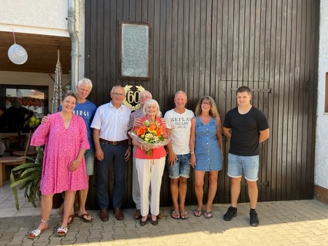 Das Ehepaar heiratete 1962 beim Standesamt in Essenheim. Rudolf Betz (86) arbeite für das Gemeinnützige Siedlungswerk GmbH in Mainz und war Bautechniker und -ingenieur. In dieser Zeit war er am Bau von 800 Wohnungen beteiligt. Außerdem arbeitete er im heimischen Winzerbetrieb. Auch Gertrud Betz (82) half dort mit. Zu der Familie gehören zwei Söhne und ein Enkel. Der Winzerbetrieb wurde von 1968 bis 1997 bewirtschaftet. Vor zehn Jahren eröffnete der Enkel den Familienbetrieb neu. Erwin Malkmus wünschte dem Ehepaar weiterhin alles Gute für die Zukunft und viel Freude mit der Familie.