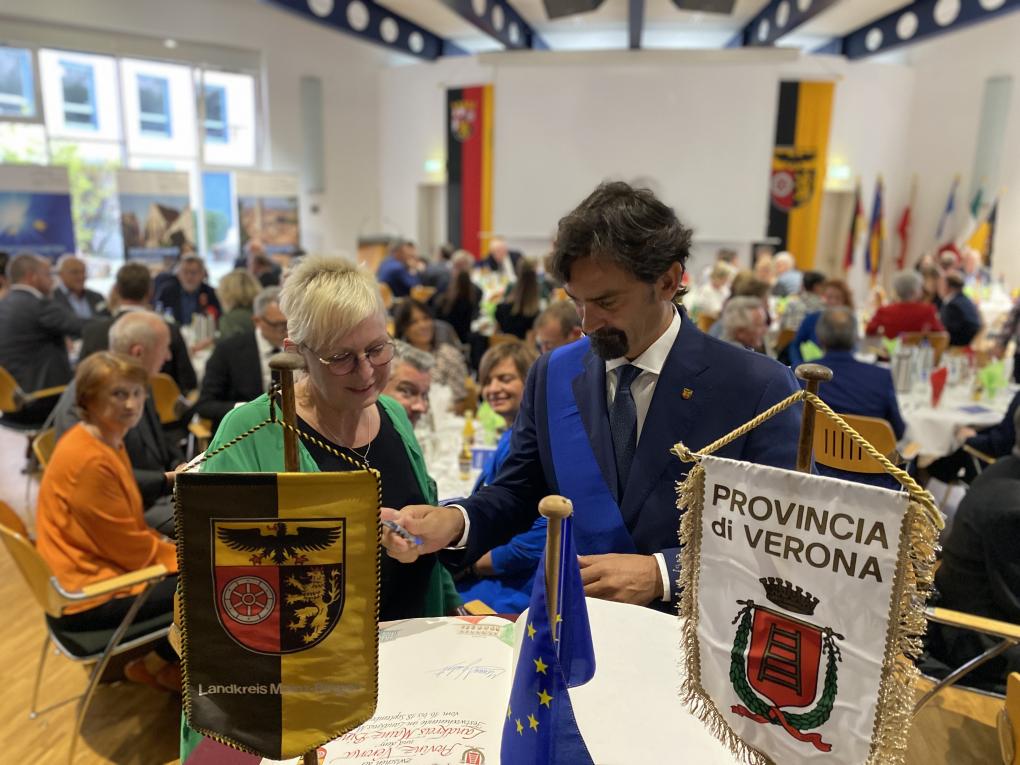 Die rund 40-Köpfige Delegation aus der Provinz Verona wurde angeführt von Präsident Manuel Scalzotto. Für den Präsidenten der Provinz ist es wichtig, dass sich die Menschen treffen. Vor allem die jungen Menschen hat er dabei im Blick, die „eine andere Welt als die eigene entdecken, daran wachsen und damit in die Lage versetzt werden zu beurteilen und zu schätzen, was zu dem Ort gehört, an dem sie aufgewachsen sind.“ Der Landkreis und die Provinz unterstützen dies seit vielen Jahren mit einem Austausch- und Praktikantenprogramm. Der Nachwuchs war auch Thema der Rede von Anna Kapka, Präsidentin des Partnerschaftskomitees in der Provinz Verona. Sie schlug vor, bei einem gemeinsamen Workshop Ideen zu erarbeiten, wie der Nachwuchs für die Partnerschaft gewonnen werden kann.