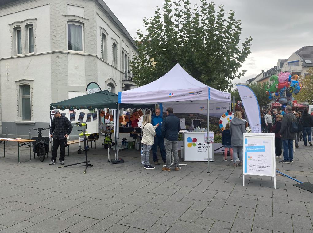 Am vergangenen verkaufsoffenen Sonntag informierte das Team der Ingelheimer KlimaWerkstatt über aktuelle Projekte zum Klimaschutz und zur Klimaanpassung in Ingelheim und gab hilfreiche Tipps zu den städtischen Fördermöglichkeiten und zu Energiereinsparmöglichkeiten.