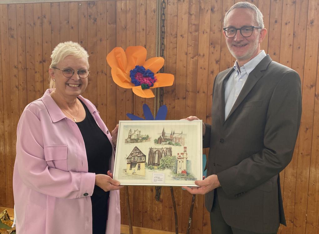 Eine Zeitreise durch fünf Jahrzehnte: Das war das Ziel der Schülerinnen und Schüler, die zusammen mit ihren Lehrern eine überaus kreative Show geplant hatten. Von wundersamen Frisuren der frühen 70er-Jahre wurden auch Popstars der 80er oder die digitale Revolution in den 2000er-Jahren angesprochen und parodiert. Sogar eine eigene kleine „Wetten-Dass“-Wette gab es, genauso wie einen nachgestellten Live-Stream bekannter Influencer auf sozialen Medien. „Ihr glaubt gar nicht, wie gut mir eurer Programm gefallen hat“, lobt Landrätin Dorothea Schäfer die Showeinlagen der Schüler. Gleichzeitig hob sie aber auch die Bedeutung der verpflichtenden Ganztagsschule, deren Einführung im Jahr 1972 gedacht wurde, hervor. Diese könne gezielt auf die Bedürfnisse der Kinder und Jugendlichen eingehen. „Besonders danken möchte ich den Lehrerinnen und Lehrern, die nicht nur Tag für Tag alles geben, sondern auch diese schöne Veranstaltung geplant haben.“
