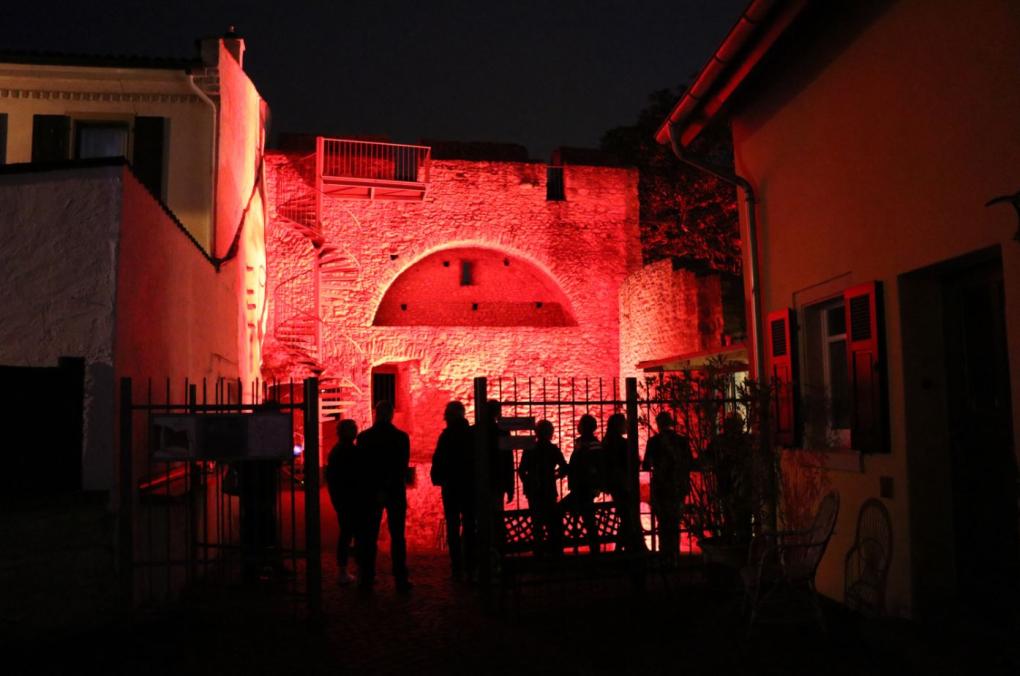 Zuständig für die Erhaltung der bis zu 1200 Jahre alten Mauern des Denkmals ist die Forschungsstelle Kaiserpfalz. Die regelmäßige Kontrolle des Mauerwerks gehört dabei zu ihren wichtigsten Aufgaben. Nur so lässt sich garantieren, dass die Verkehrssicherheit im Denkmalbereich gewahrt bleibt und Besucher*innen auch in Zukunft in den Genuss kommen können, das einmalige kulturelle Erbe Ingelheims zu erleben. Wie notwendig die fortlaufende Überwachung der mittelalterlichen Bausubstanz ist, zeigte sich bei einem routinemäßigen Kontrollrundgang im vergangenen Jahr: im Mauerwerk der Wehrmauer an der Aula regia waren Risse aufgefallen. In ihrem Kern ist die Mauer aus dem 12. Jahrhundert, sie wurde bis in die Neuzeit immer wieder ausgebessert und verstärkt. Der Abschnitt ist aus bauhistorischer Sicht deshalb besonders interessant, weil hier der ursprünglich karolingische Bau und die staufische Erweiterung unmittelbar aufeinandertreffen. Als Ursache für die Schäden vermuten Fachleute aus dem Boden aufsteigende Feuchtigkeit, die in das Mauerwerk eingedrungen ist.