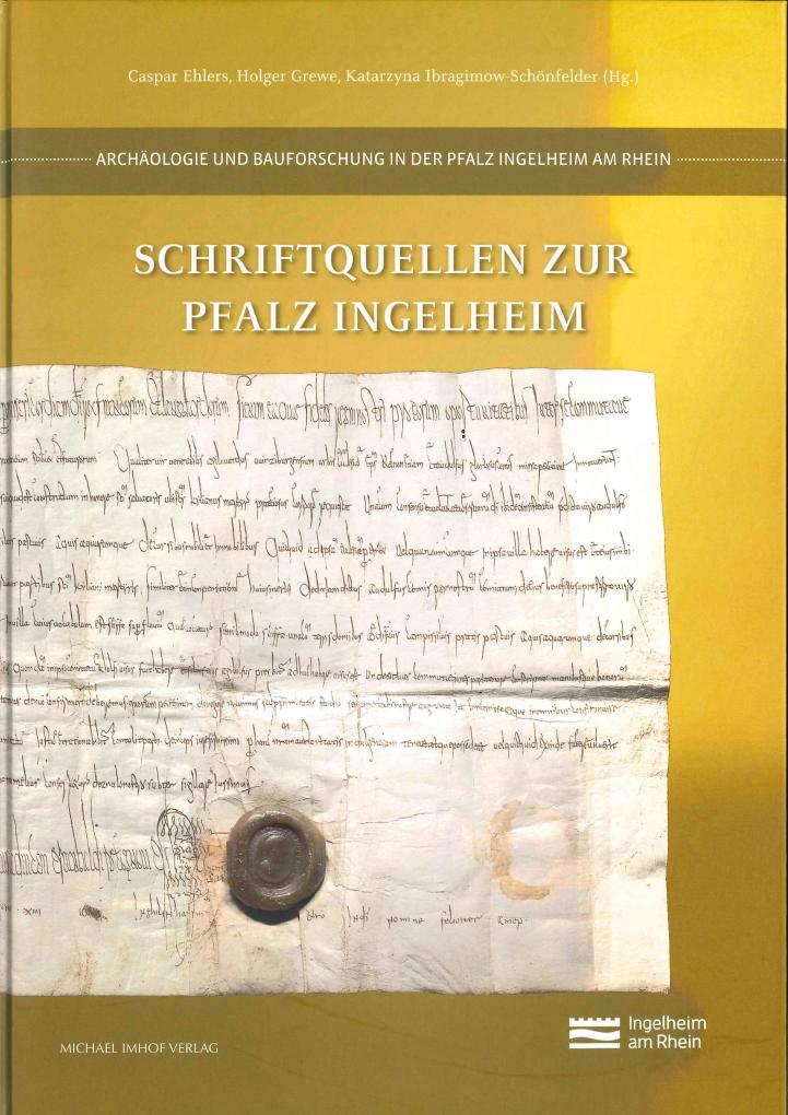 Wissenschaftlichen Reihe „Archäologie und Bauforschung der Pfalz Ingelheim am Rhein“, Band 3.1: Schriftquellen zur Pfalz Ingelheim. Lateinische Texte der karolingischen Epoche gesammelt, übersetzt und kommentiert von Hartmut Geißler. Mit archäologischen und mediävistischen Kommentaren von Holger Grewe und Caspar Ehlers. 144 Seiten, 34 Abbildungen, 29,95 €, ISBN 978-3-7319-1274-3 Erhältlich im Buchhandel (z. B. bei der Buchhandlung Wagner, Ingelheim) sowie direkt beim Verlag (https://www.imhofverlag.de). Dort sind auch die Bände 1 und 2 der Reihe Archäologie und Bauforschung der Pfalz Ingelheim am Rhein (Band 1: Beiträge zur Ingelheimer Pfalz und ihrer Peripherie 2001–2020; Band 2: Bauskulptur und Steinbearbeitung im Frühmittelalter) erhältlich.