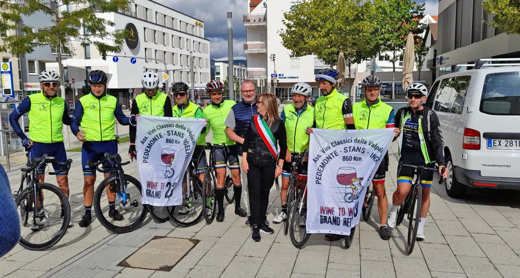 Am Samstagmorgen trafen neun Radfahrer aus San Pietro ein, die die 860 Kilometer lange Strecke in der „Wine to Wine Grand Relay“ mit dem Fahrrad zurücklegten. Sie wurden gebührend auf dem Fridtjof- Nansen-Platz empfangen.