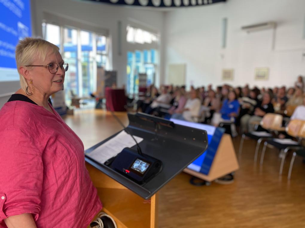 Das Gewalt und Spannungen aktuell zunehmen, berichtete Prof. Dr. Mériem Diouani-Streek in ihrem Fachvortrag. Sie ist Diplom-Pädagogin, Entwicklungspsychologische Beraterin und Therapeutin und derzeit Vertretungsprofessorin an der Frankfurt University of Applied Sciences. Zuvor war sie sechs Jahre Leiterin der Beratungsstelle im Deutschen Kinderschutzbund Frankfurt und weiß daher als Praktikerin und insoweit erfahrene Fachkraft (InsoFa), wie anspruchsvoll und wichtig eine differenzierte Einschätzung der Gefährdungslage ist. Man müsse genau hinschauen und dabei die aktuelle Situation des Kindes in den Blick nehmen. Denn anders als in hochsensiblen Kinderschutzfällen reiche es in den meisten Fällen aus, die Familien mit geeigneten Mitteln der Kinder- und Jugendhilfe zu unterstützen. Dabei gilt es, gemeinsam mit den Eltern wertschätzend Lösungen zu erarbeiten, um eine drohende Kindeswohlgefährdung abzuwenden, so die Referentin. Handlungsleitend für die pädagogischen Fachkräfte sollte in jedem Fall die Bedeutung eines tragfähigen Beziehungsangebots sein. Denn „nur ein individueller, verstehender Zugang zum Kind in einer tragenden, genügend guten emotionalen Beziehung kann das Fundament einer später resilienten Entwicklung für gefährdete Kinder legen“, so ein vorgetragenes Zitat der Psychoanalytikerin Prof. Dr. Marianne Leuzinger-Bohleber aus dem Fachvortag. Daher könne die Veranstaltung auch als eine Ermutigung an alle Anwende verstanden werden, sich ihrer eigenen Fachlichkeit zu vergewissern und ihr professionelles Handeln an den Bedürfnissen des Kindes zu orientieren, so der Appell der Referentin.