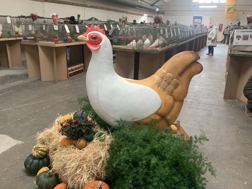 Wenn man die Alte Markthalle in Nieder-Ingelheim an diesem Wochenende besucht, hört und sieht man allerlei Ungewohntes. 48 Aussteller zeigen Geflügel und Kaninchen, - zusammen 364 Tiere - die von sieben Preisrichtern bewertet werden. In Käfigen präsentieren die Züchter ihre Prachtexemplare, alle in einem hervorragenden Zustand, frisch gebadet und gebürstet. Bevor die Tiere zur Ausstellung zugelassen werden, erfolgt eine tierärztliche Untersuchung. Jedes Tier hat eine saubere Strohunterlage, Futter- und Wasserschälchen. Da die Tiere normalerweise in der freien Natur unterwegs sind, werden sie zwei Tage vor und zwei Tage nach der Ausstellung zur Eingewöhnung und Entwöhnung noch in Käfigen gehalten.
