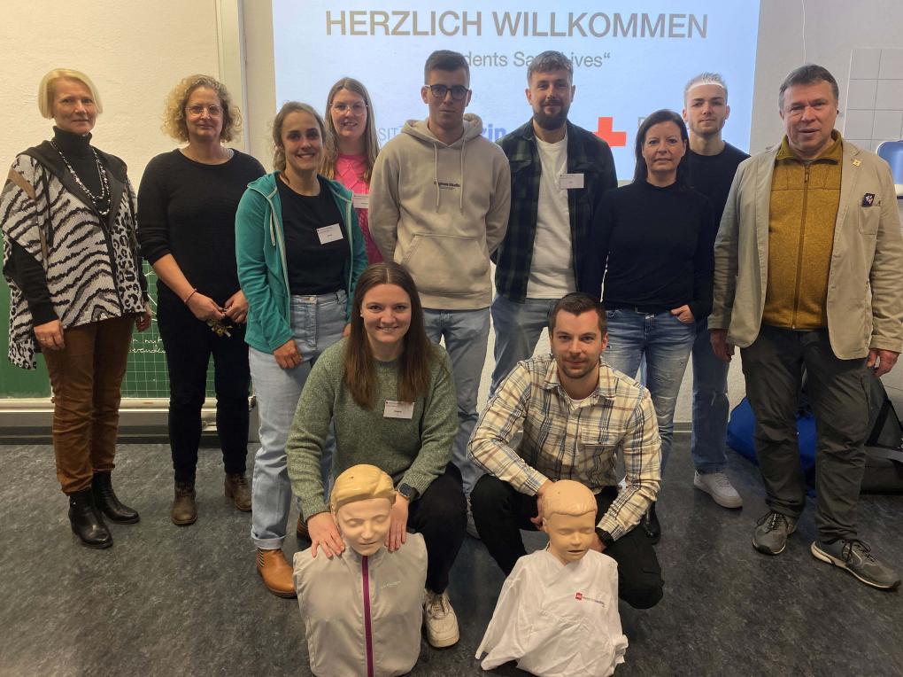 Bei einem Herz-Kreislauf-Stillstand ist schnelles Handeln gefordert. Damit im Ernstfall mehr kompetente Ersthelferinnen und -helfer Leben retten können, geben Medizinstudierende der Universitätsmedizin Mainz sowie angehende Notfallsanitäterinnen und -sanitäter aus dem DRK-Bildungsinstitut Rheinland-Pfalz ihr Wissen weiter. Beim Projekt „Students Save Lives“ besuchen sie innerhalb von einer Woche 13 Schulen im Landkreis Mainz-Bingen und der Stadt Mainz. Dort vermitteln sie rund 1400 Siebtklässlerinnen und Siebtklässlern, was im Notfall zu tun ist. Ausgebildet und begleitet werden sie von Projektleiter Dr. Carsten Lott, der kommissarisch als Ärztlicher Leiter Rettungsdienst (ÄLRD) für den Rettungsdienstbereich Mainz zuständig ist.