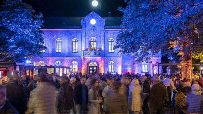 Mit Eintreten der Dunkelheit verwandeln stimmungsvolle Lichtszenarien den Platz um das Kunstforum Ingelheim in einen wahrhaft magischen Ort. Die Köche der Wirtschaftsbetriebe von Boehringer Ingelheim zaubern vor Ort frisch zubereitete kulinarische Schmankerl auf die Teller, die durch die Ausstellung „Neugier, Mut und Abenteuer: Fotografinnen auf Reisen“ inspiriert sind. Ergänzend laden ausgewählte Ingelheimer Weine oder Cocktails zum Verweilen und Genießen ein.
