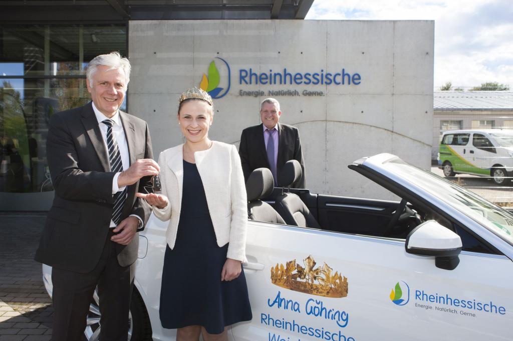 Voller Energie startet die neue Rheinhessische Weinkönigin in ein Jahr mit spannenden Repräsentationsaufgaben rund um die einzigartigen Weine der Region. In ganz Deutschland ist sie nun in einem Audi A3 Cabrio unterwegs, das ihr vom regionalen Energieversorger Rheinhessische Energie- und Wasserversorgungs-GmbH mit Sitz in Ingelheim zur Verfügung gestellt wird.