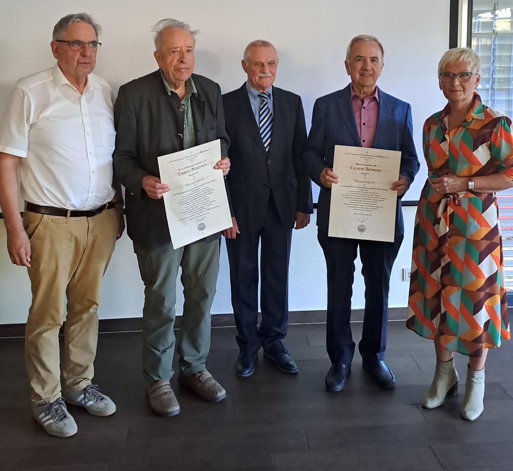 Für ihre besonderen Leistungen im Rahmen der Heimatgeschichte wurden als Ehrenmitglieder der frühere Landrat Claus Schick, der ehemalige Oberbürgermeister der Stadt Bingen Erich Naujack und einstige Verbandsbürgermeister der VG Gau-Algesheim, Dieter Linck, geehrt. Die jeweils auf den Preisträger bezogene aufwendig gestaltete Ehrenurkunde würdigt die individuellen Leistungen.