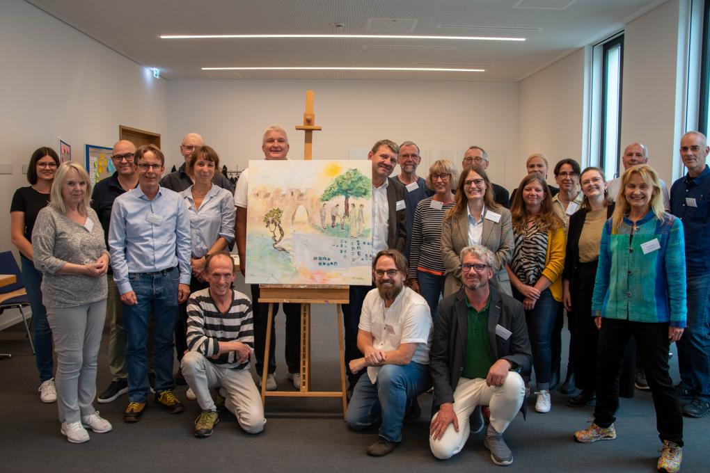 Organisiert durch die KlimaWerkstatt Ingelheim brachte die Veranstaltung Vertreter*innen aus Verwaltung, Wissenschaft, Zivilgesellschaft und Energiebranche zusammen, um gemeinsam die Herausforderung einer sicheren, bezahlbaren und klimaneutralen Wärmeversorgung zu erörtern und passende Handlungsoptionen zu visualisieren. Ziel war es, erste Visionen zu entwickeln und Grundlagen für zukünftige Szenarien zu erarbeiten – ein wichtiger Auftakt für den kommunalen Transformationsprozess. Die Visionierung wurde durch die kreative Handschrift der lokalen Künstlerin Sylvia Catharina Hess bildnerisch dargestellt. Das entstandene Werk wird zunächst in den Räumen der KlimaWerkstatt ausgestellt.