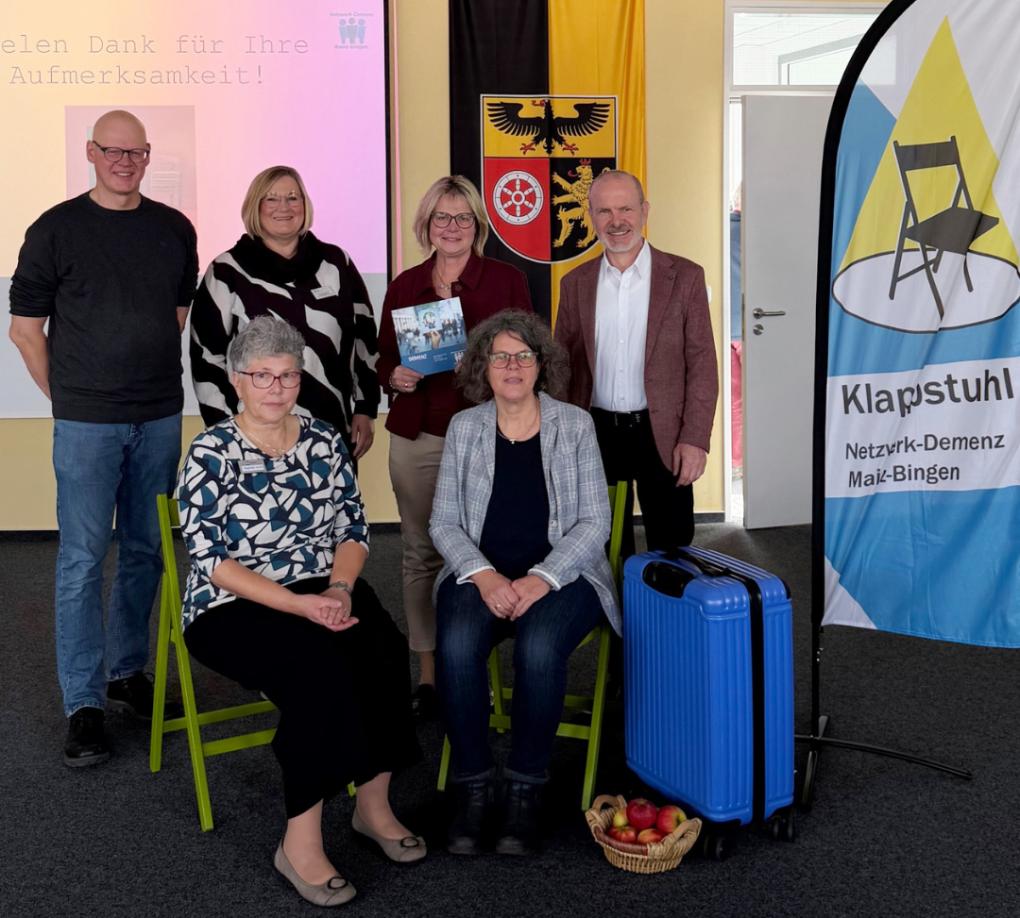 Mit einem Klappstuhl und einem Koffer voller Infomaterial schafft das Netzwerk Demenz Mainz-Bingen einen Raum für Austausch, Fragen und Verständnis. Interessierte, Organisationen oder Kommunen können den Klappstuhl über das Netzwerk Demenz Mainz-Bingen buchen. Mehr Informationen sind auf https://www.netzwerkdemenz-mainzbingen.de zu finden.
