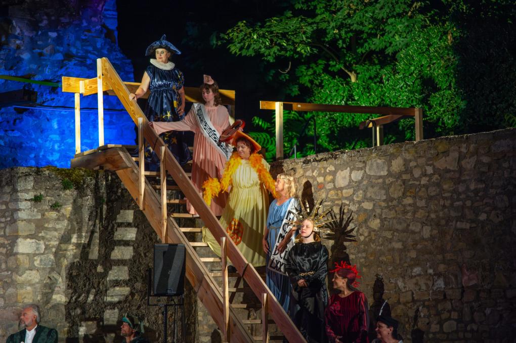 Als wichtiger Kooperationspartner bei der Produktion fungiert das Museum bei der Kaiserpfalz, das von Beginn an mit im Boot ist und seine historische Expertise beisteuert. „1928 und 1952 wurde Zuckmayers ´Schinderhannes´ in Ober-Ingelheim aufgeführt“, berichtet Dr. Nicole Nieraad-Schalke, stellvertretende Museumsleiterin. In Anwesenheit des Schriftstellers wirkten damals zahlreiche Ingelheimer Laiendarsteller*innen mit. An diese Tradition knüpfe das aktuelle Theaterprojekt der IkUM an. „Das Museum war in den gesamten Probe- und Aufführungsprozess eingebunden und konnte spontane Fragen zu mittelalterlicher Kleidung, Instrumenten oder anderen Requisiten beantworten“, erläutert Dr. Nicole Nieraad-Schalke. „Es war eine einzigartige Erfahrung, mit den professionellen Schauspieler*innen des Mainzer ZEITGEIST-Ensembles, darunter der Musicaldarsteller Dennis Johnson, auf der Bühne zu stehen und auch hinter den Kulissen von hochprofessionellen Beteiligten (Technik, Kostüm, Maske) umgeben zu sein“, schwärmt die stellvertretende Leiterin des Museums. „Es ist faszinierend, wie innerhalb von zwölf Monaten ein kulturelles Großprojekt entstanden ist, das offenbart, wie historische Forschung, lokale Bühnentradition und professionell zeitgenössische Theaterarbeit erfolgreich zusammengeführt werden können.“