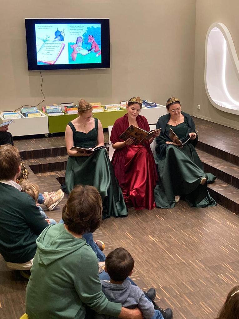 Bereits zum 20. Mal fand der Bundesweite Vorlesetag der Stiftung Lesen statt. In der Mediathek waren aus diesem Anlass drei ganz besondere Ingelheimer Persönlichkeiten zu Gast. Die Kinder konnten die diesjährige Rotweinkönigin Lina Weitzel und ihre Prinzessinnen Laura Schlösser und Sara Weitzel hautnah erleben. Die besondere Atmosphäre wurde durch viele kleine als Prinzessin oder Prinz verkleidete Kinder untermalt.