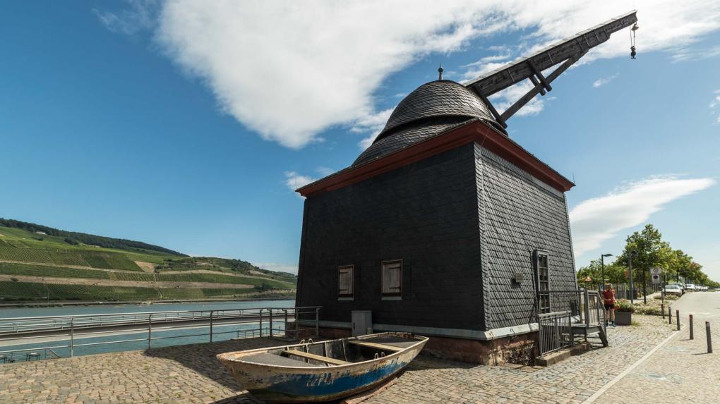 Kranknecht Stefan erzählt im historischen Kostüm über seinen Arbeitstag am ältesten datierbaren Rheinkran zwischen Köln und Mainz. Mit dem Kran von 1468 wurden die Rheinschiffe mit Gütern wie Salz, Getreide oder Wein be- und entladen. Ein wichtiger Wirtschaftsfaktor für die Stadt Bingen.