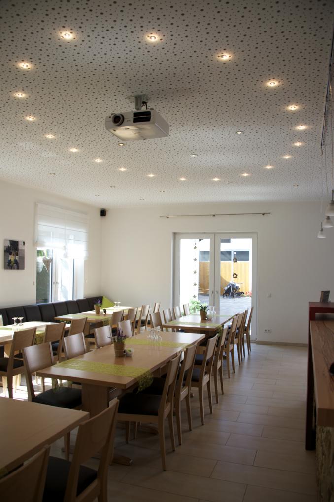 - Beamer, Beschallung, individuelle Beleuchtung und Akustikdecke