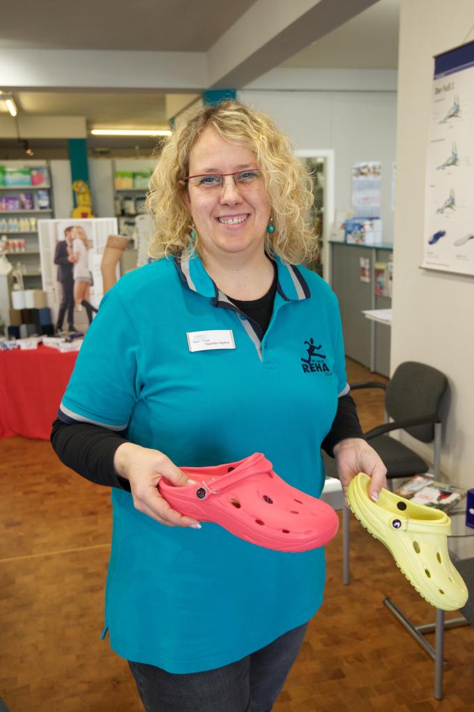 Freundlich ist auch Gabriele Höpfner, die mit ihrer fachkompetenten Beratung punktet. Neben dem guten Sortiment an Hygienebedarf, Bandagen, medizinischen Messgeräten, Rollatoren und Rollstühlen sind auch Spezialschuhe ein wichtiges Thema. Aber auch für Sportler und Schwangere wird einiges geboten.