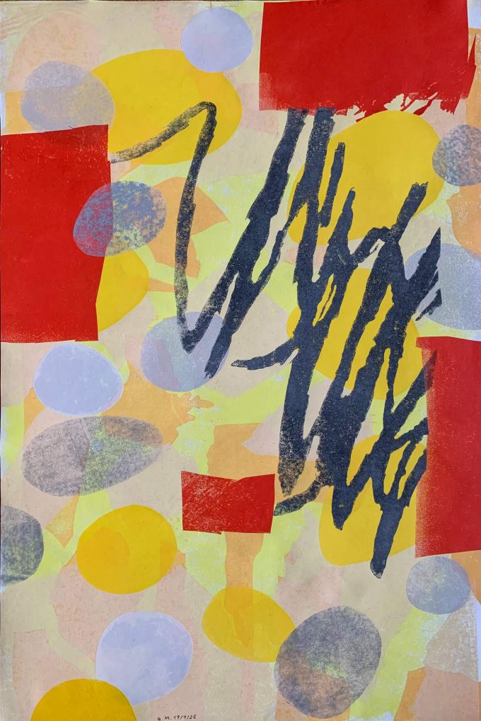 Die Anordnung der Symbole entstand mithilfe eines eigens entwickelten Computerprogramms. Anders als bei klassischen Mustertapeten wiederholt sich das Motiv nicht regelmäßig. Es gibt keinen Rapport. Jede Stelle der Wand bleibt einzigartig. Das Werk interpretiert Prinzipien der Innenraumgestaltung neu und überträgt sie in eine moderne, offene Formensprache.
