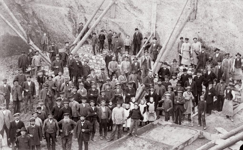Foto der Grundsteinlegung des Winzerkellers als Teil einer neuen Dauerausstellung