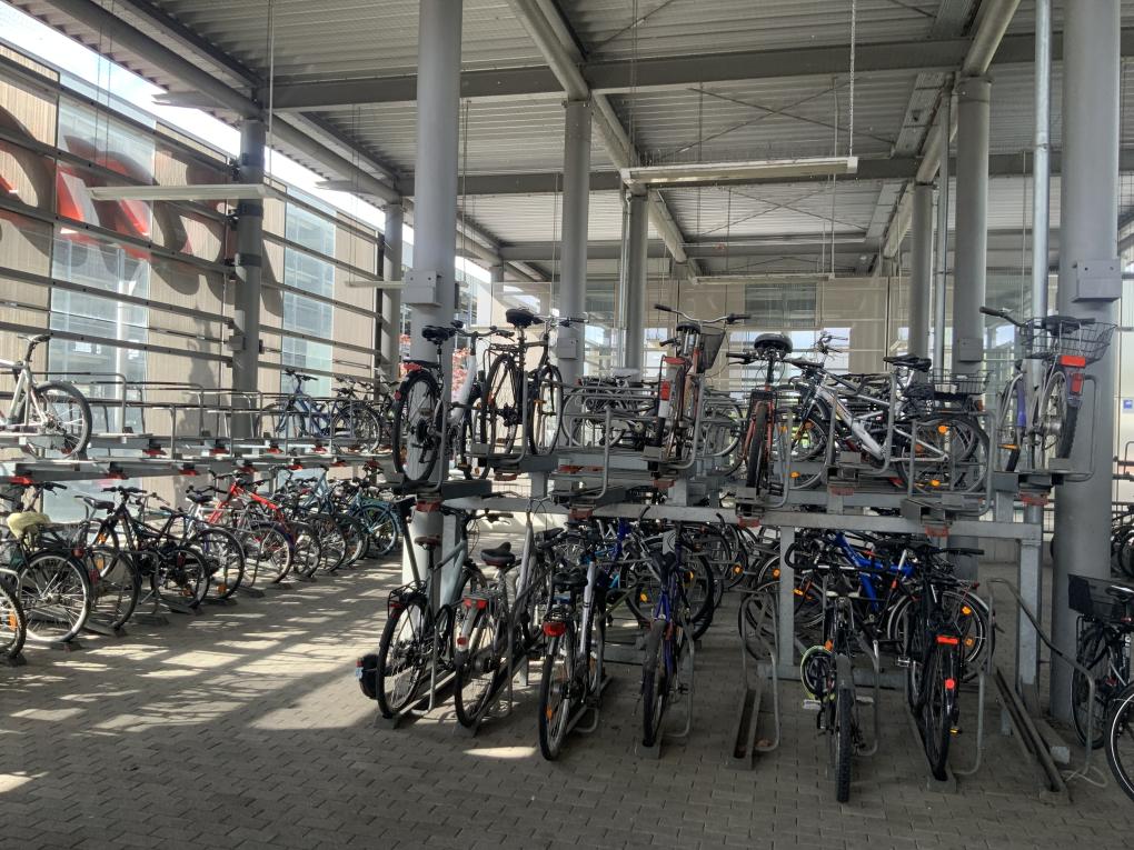 Die Halle wird gut genutzt, zumal sie sich direkt am Bahnhof befindet und man in kürzester Zeit in der Neuen Mitte und in der Fußgängerzone ist. Innerhalb der Stadt finden sich immer wieder Hinweise auf Radwege. Dass die Stadt radwegemäßig so gut erschlossen ist, hängt auch mit der Tatsache zusammen, dass viele Firmen E-Bikes für ihre Mitarbeiterinnen und Mitarbeiter zur Verfügung stellen. Innerhalb der Firma Boehringer gibt es Fahrräder für die interne Nutzung auf dem Firmengelände, aber auch solche, die außerhalb genutzt werden dürfen.