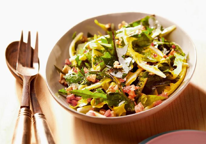 Löwenzahnsalat mit Löwenzahnhonig-Walnussöl-Dressing