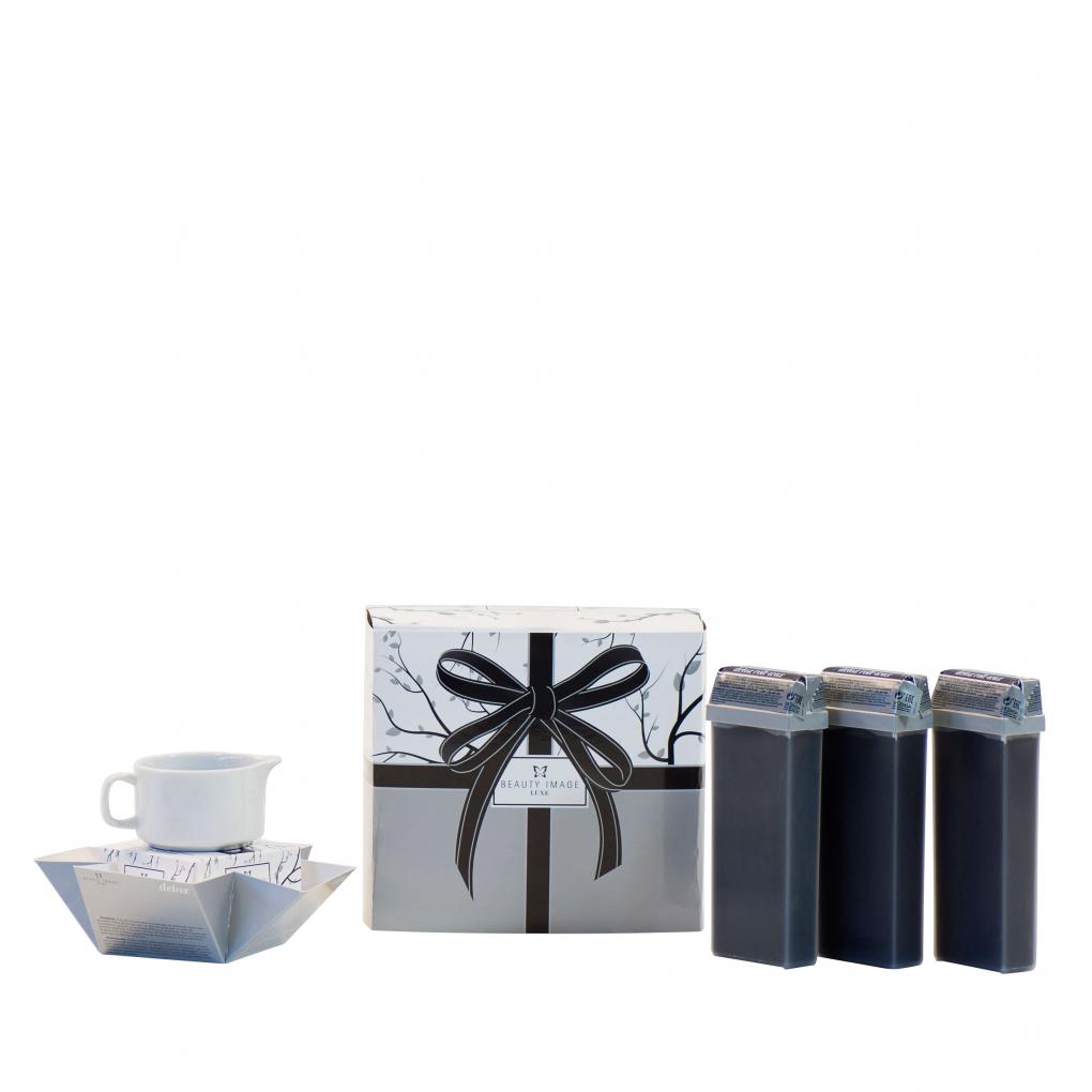Die praktische Detox-Box von BEAUTY IMAGE enthält drei Wachspatronen und eine Öl-Massagekerze der Produktlinie Detox.