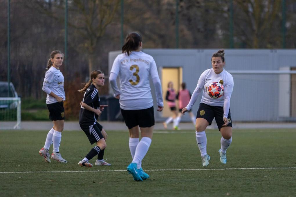 Und die Ingelheimerinnen blieben auf dem Gaspedal. Immer wieder wurden schnell die Seiten verlagert, tolle Kombinationen durchs Zentrum gespielt und es kam fast im Minutentakt zu Torabschlüssen. Es war unheimlich viel Engagement und Bewegung im FFV-Angriffsspiel, was zu sechs weiteren Gastgeber-Treffer vor dem Seitenwechsel führte. Torschützin dieser Treffer zum drei bis acht zu null war ausschließlich Rink, die es aber von ihren Mitspielerinnen leicht gemacht bekam und oft nur noch eindrücken musste. So sammelten Emilia Weber (17., 45.+2), Angelia Drewicke (23.), Lea Rehn (36.), Lilly Rühlmann (41.) und Rauprich (44.), die ihre Stürmerin teils sehenswert bedienten, fleißig Punkte für die Scorerliste, in der bekanntlich jedes Tor und jede Vorlage berücksichtigt wird.