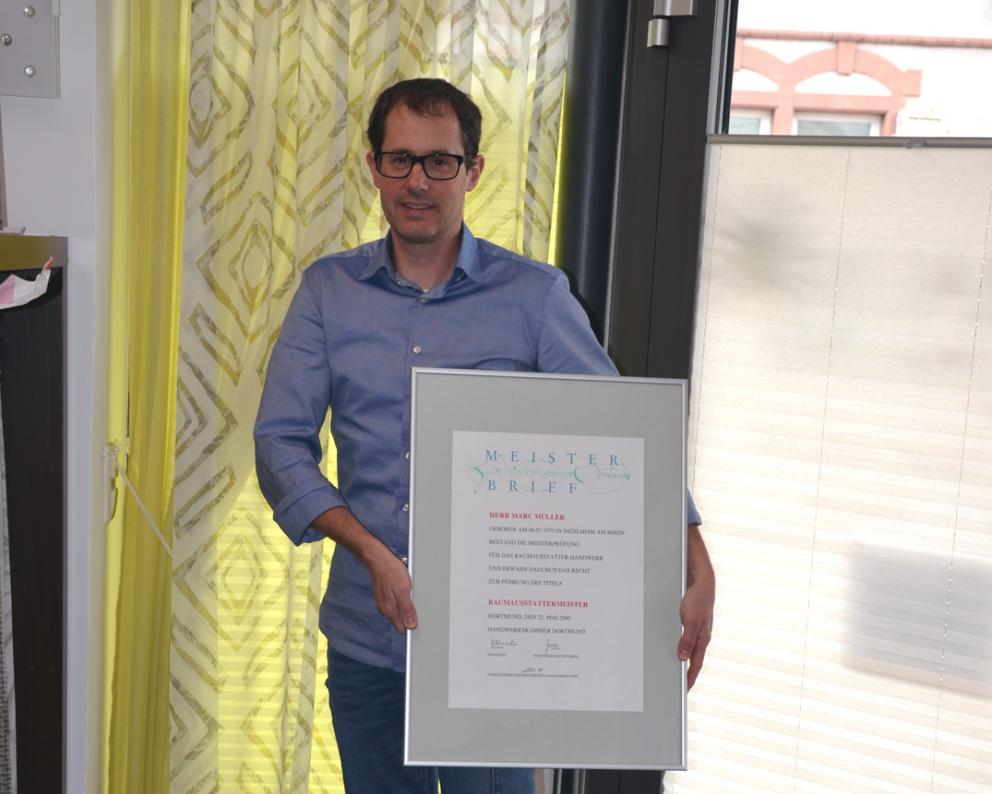 Im Mai 2010 fing alles an! Am 22. Mai 2000 absolvierte Marc Müller erfolgreich seinen Meister im Raumausstatter-Handwerk. Seit 2006 ist er selbstständig und am 8. Mai 2010 erfüllte er sich mit der Eröffnung seines eigenen Geschäftes „Raum Träume“ in der Binger Straße seinen Traum. In seiner Mitarbeiterin Sabine Scholz fand er eine erfahrene Fachverkäuferin und mit Gisela Füßgus und Anja Möritz hervorragende Näherinnen. Gemeinsam haben sie sich einen guten Kundenstamm aufgebaut.