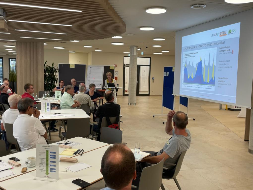 In seinen Begrüßungsworten motivierte Urs Löpfe vom Verein EeC, neue Wege hinsichtlich der Energiewende zu gehen – statt im Alleingang in der Gemeinschaft. Der Verein EeC bringt seine große Erfahrung in der Schweiz gelebter Bürgerbeteiligung ein. Martina Schnitzler vom UEBZ stellte die aktuelle globale und lokale Ausgangslage im Energiesektor vor. Der Vortrag beinhaltete hierbei auch Betrachtungen bis auf die Gebäudeebene herunter.