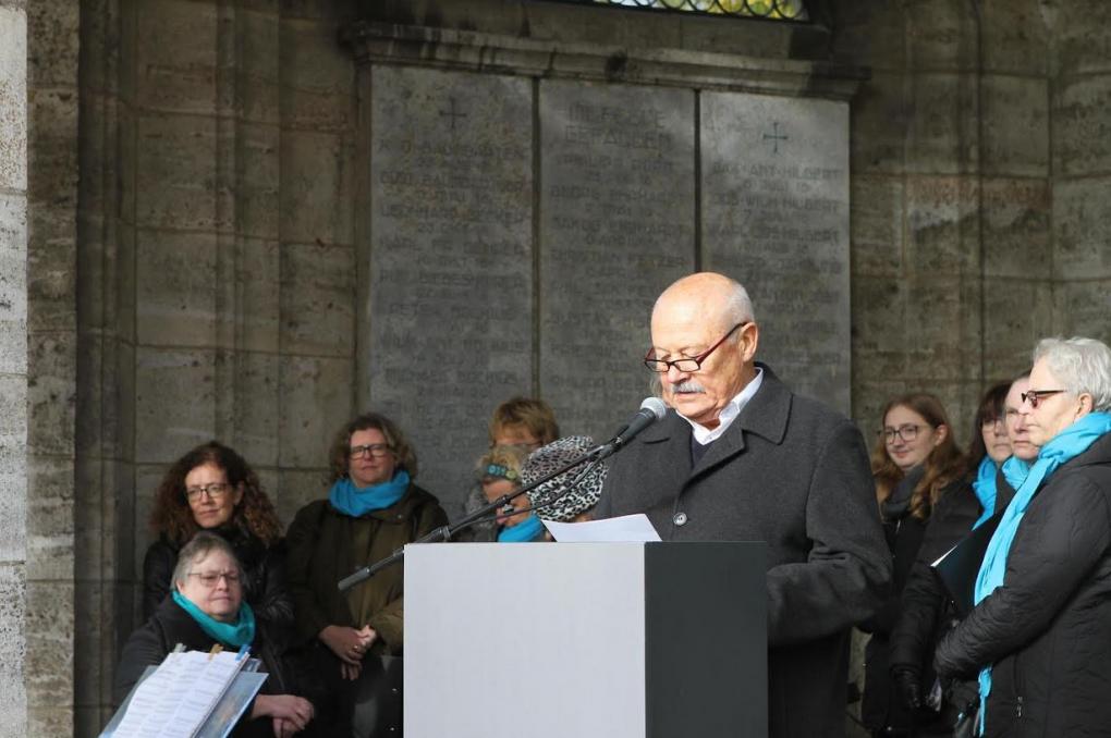 Die Ansprache wurde in diesem Jahr vom Präsident des Landessportbunds Rheinland-Pfalz Wolfgang Bärnwick gehalten. „Wir denken an all die menschlichen Schicksale, die aufgrund von kriegerischen Auseinandersetzungen und Gewaltherrschaft zu beklagen sind. Wir gedenken der Verwundeten an Körper und Seele, der Misshandelten, der Vergewaltigten, der Missbrauchten. Und wir denken auch an die, die von verantwortungslosen Machthabern in aussichtslose Kämpfe geschickt wurden, in denen sie ihre Gesundheit, ihr Jugend, ihre Unschuld und zu allerletzt ihr Leben verloren haben“ mahnte er. Denn es seien nicht die Zahlen und Daten, sondern die menschlichen Schicksale, die anrührten und bewegten. Wir, die wir in einer intakten Demokratie in Freiheit lebten, sollten die Kräfte bündeln und verhindern, dass Unrecht und Willkür die Macht erlangten über Freiheit, Frieden und Demokratie. „Treten wir all denjenigen entschieden entgegen, die Verschwörungstheorien in die Welt setzen und noch entschiedener denen, die versuchen, unseren Rechtsstaat anzugreifen und zu unterminieren! Nie wieder Gewalt, nie wieder Krieg“ schloss er seinen eindringlichen Appell.