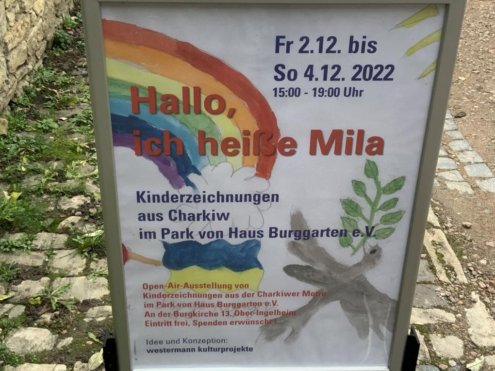 Kinderzeichnungen aus Charkiw in Open Air Ausstellung im Park Burggarten „Hallo, ich heiße Mila“
