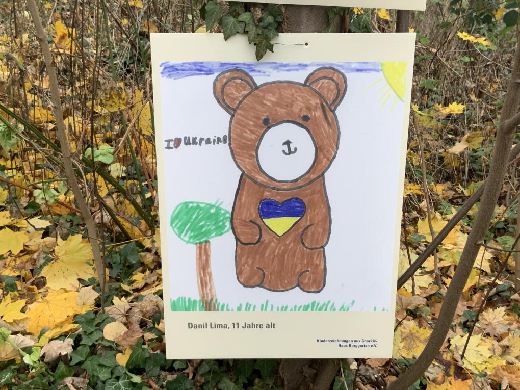 Kinderzeichnungen aus Charkiw im Park Burggarten