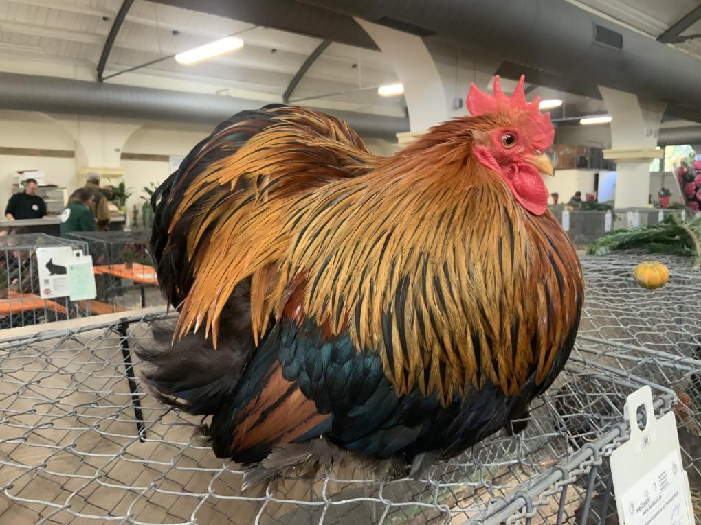 Wenn man die Alte Markthalle in Nieder-Ingelheim an diesem Wochenende besucht, hört und sieht man allerlei Ungewohntes. 48 Aussteller zeigen Geflügel und Kaninchen, - zusammen 364 Tiere - die von sieben Preisrichtern bewertet werden. In Käfigen präsentieren die Züchter ihre Prachtexemplare, alle in einem hervorragenden Zustand, frisch gebadet und gebürstet. Bevor die Tiere zur Ausstellung zugelassen werden, erfolgt eine tierärztliche Untersuchung. Jedes Tier hat eine saubere Strohunterlage, Futter- und Wasserschälchen. Da die Tiere normalerweise in der freien Natur unterwegs sind, werden sie zwei Tage vor und zwei Tage nach der Ausstellung zur Eingewöhnung und Entwöhnung noch in Käfigen gehalten.