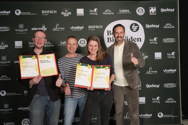 14.02.24 – Es darf wieder gejubelt werden: Zum 21. Mal haben die Leser*innen des Magazins Schrot&Korn abgestimmt und Deutschlands beste Bioläden gewählt. Auf der Weltleitmesse für Bio-Lebensmittel, der BioFach Messe in Nürnberg wurden diese jetzt bekanntgegeben und auch die Urkunden feierlich verliehen. Die natürlich-Marktleiter*innen Sina Laubscher, Thomas Meier und Mirko Krpic nahmen diese stellvertretend für ihre Teams persönlich entgegen. Rund 50.000 Stimmen wurden bei der Leserwahl abgegeben und aus über 2.500 Bioläden die besten 105 ausgezeichnet.